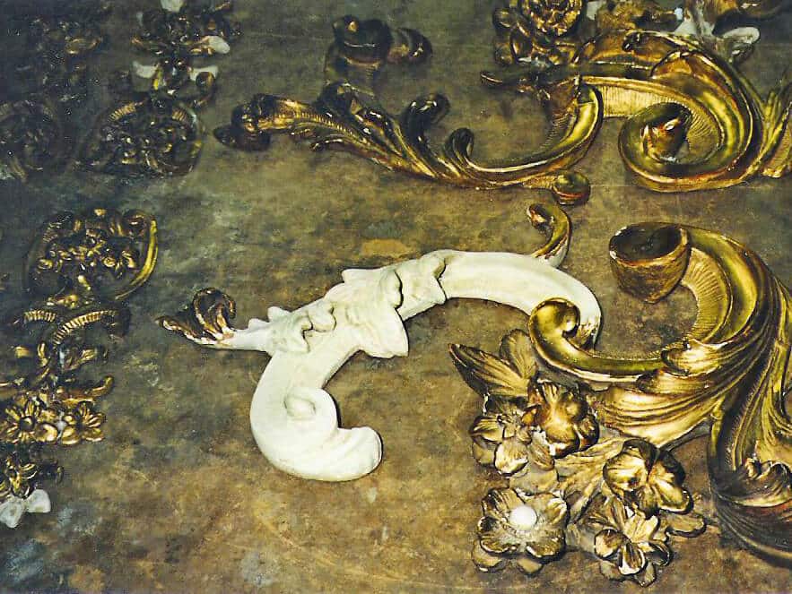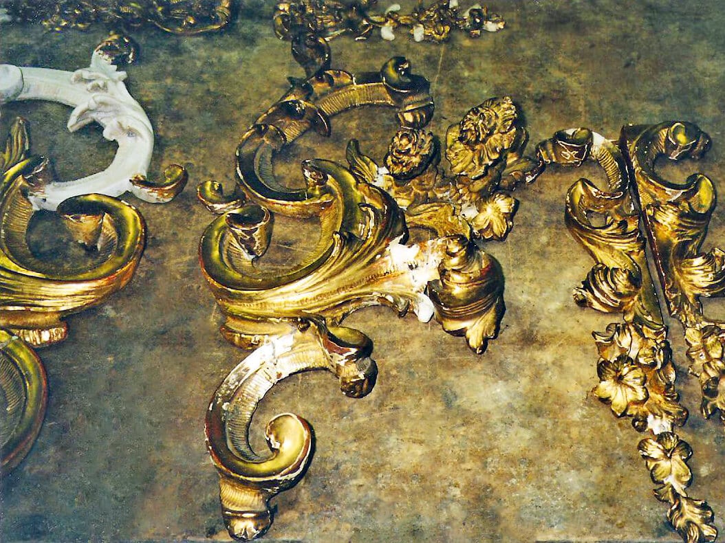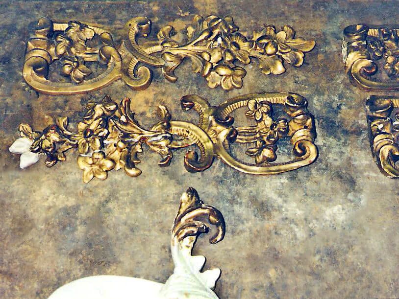 This mirror arrived from Maison Felice, a client in Palm Desert, in boxes of broken pieces to be repaired and reassembled.
