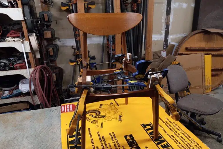 - Clean joints throughly with a sharp chisel and rough sandpaper. Be careful to not remove wood only old glue down to bare wood. *Always make sure the chisel is sharp to provide accurate working tools.