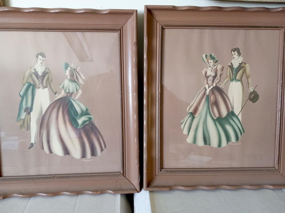 Own Two Famous Victorian Painting from artist Turner. Two gorgeous painting of lovely and beautifully dressed Southern Belles and two handsomely dressed gentlemen beaus. These paintings have pretty pastel colors and are framed under glass. I believe they are original artist Turner paintings because they have his signature on both. This set of Victorian art is rare and hard to come by.